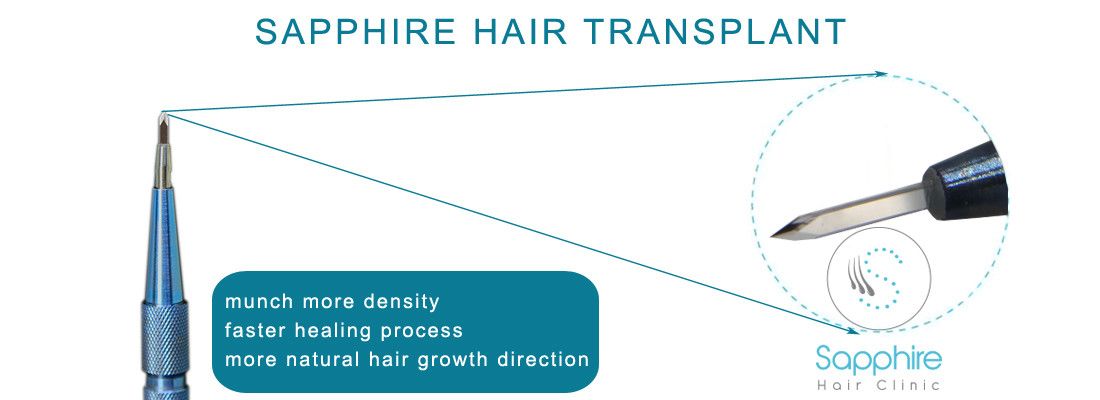 През последните години, особено в нации като Турция, методът Sapphire FUE (Follicular Unit Extraction) за трансплантация на коса нарасна в полза. Това е подобрение на стандартната техника FUE и използва специализирани сапфирени остриета или игли за създаване на реципиентни места за имплантиране на космени фоликули. Сапфирените остриета са изработени от кристален материал (сапфир), който е невероятно прецизен и остър.